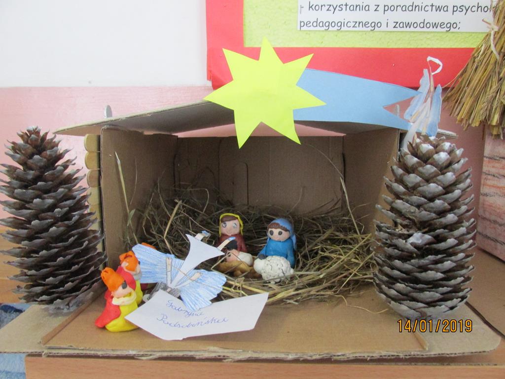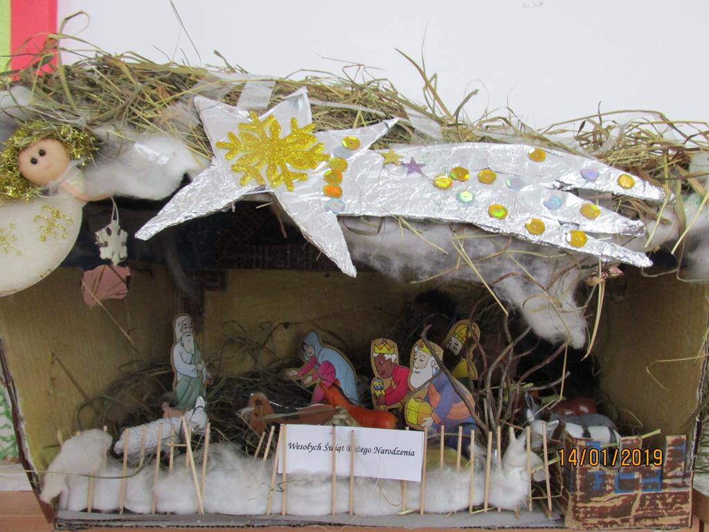 21 grudnia 2018 r. podczas uroczystej Wigilii szkolnej odbyło się rozstrzygnięcie szkolnego etapu konkursu na najpiękniejszą szopkę i kartkę bożonarodzeniową. W tym roku do konkursu zgłoszono 8 szopek i 19 kartek. Wszyscy uczestnicy konkursu zostali nagrodzeni. Natomiast komisja szczególnie wyróżniła następujących uczniów: