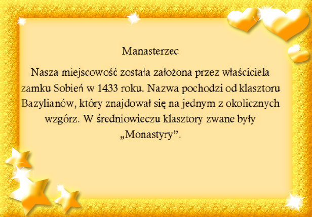 Uczniowie wybrali się na wycieczke po swojej okolicy i wykonali zdjęcia pokazujące uroki ich miejsca zamieszkania. Wcześniej na boisku szkolnym narysowali mapy swoich miejscowości, Manasterca i Łukawicy i zaznaczyli ważne punkty na mapach oraz swoje domy. Następnie ruszyli w teren i przygotowali pokaz slajdów pt. Manasterzec, Łukawica moja piękna okolica"