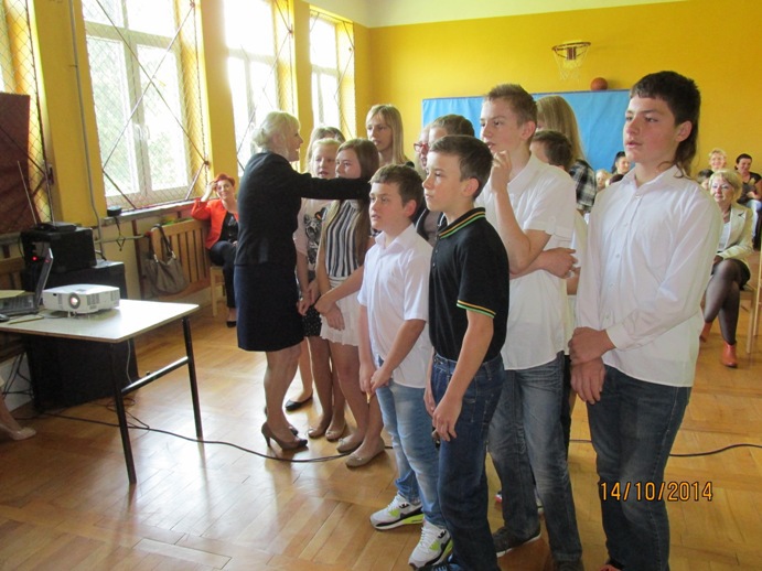 Uroczystą Wigilię szkolną rozpoczęła pani dyrektor Janina Klucz słowami powitania skierowanymi do szanownego gościa jakim była pani Zofia Przygórzewska, nauczycieli, pracowników obsługi, rodziców i uczniów.