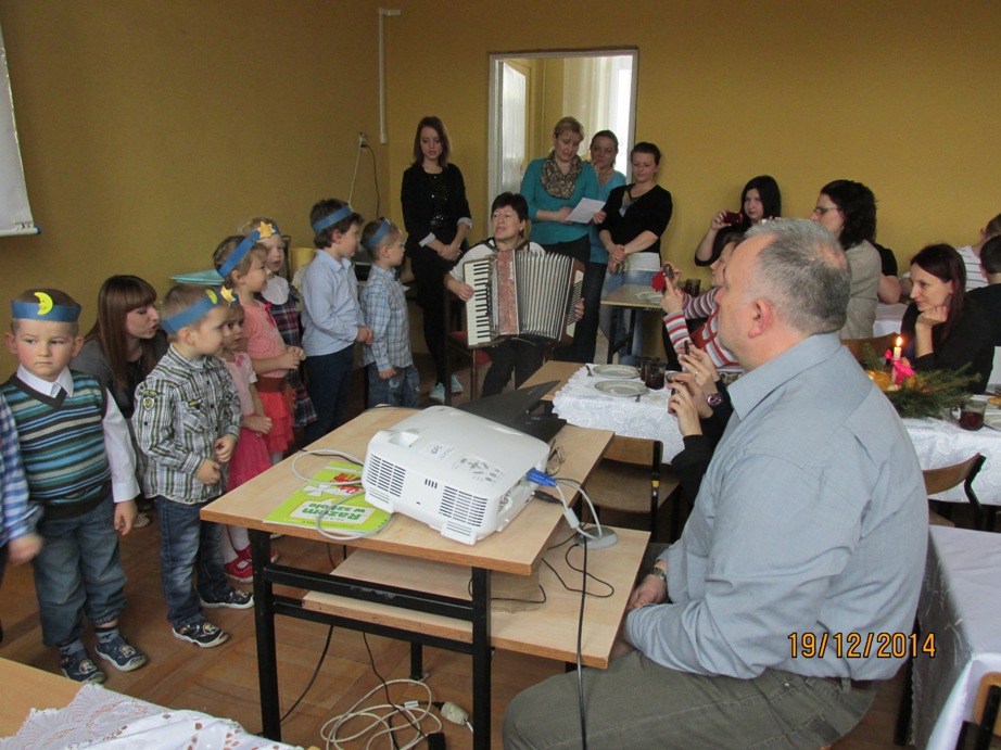 Wigilię zakończyło wspólne śpiewanie kolęd, podczas którego dzieci mogły pochwalić się umiejętnościami wokalnymi śpiewając solo do mikrofonu ulubione kolędy i pastorałki.