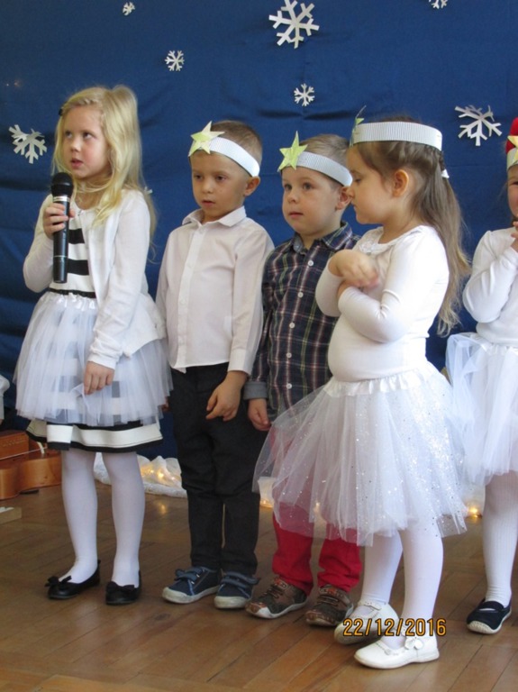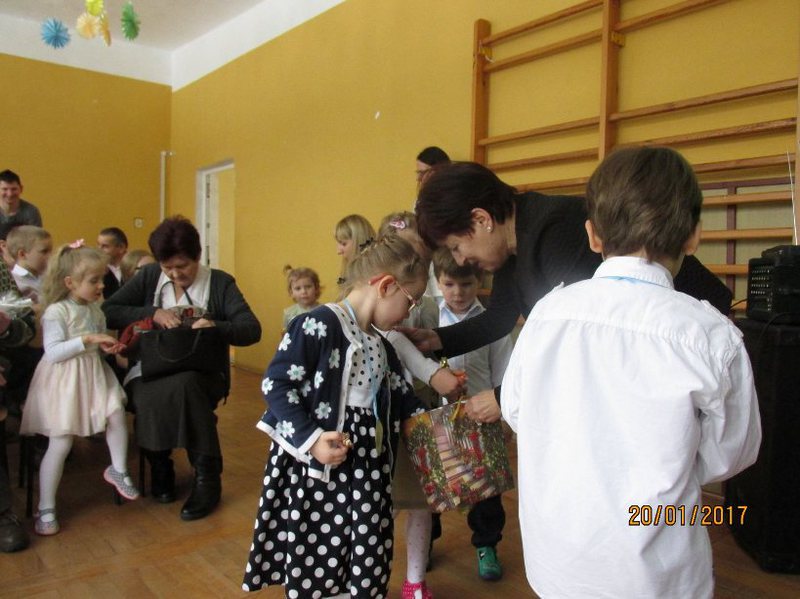 W pierwszej kolejności dzieci uczęszczające na zajęcia dodatkowe pod opieką Pani Judyty Tymplaskiej dały niesamowity pokaz swoich umiejętności tanecznych. W parach i solo, w energicznych szybkich tańcach i tych nieco wolniejszych dzieci prezentowały się niesamowicie. Urocze wierszyki i piosenki maluszków wycisnęły niejedną łezkę z mamusinych oczu. Dla wielu przedszkolaczków był to premierowy występ. Nieco doświadczeni już starsi koledzy i koleżanki z „zerówki” i klasy I pod opieką pani Joanny Drozdalskiej-Szeligi zaprezentowali się równie wspaniale w inscenizacji pt.: „Zapach mamy”. Program artystyczny złożony był również z wspaniałych piosenek i wierszy z morałem, który można ująć cytatem z jednej z nich: „...wracaj szybko, wracaj, kto ważniejszy, ja czy praca?...”