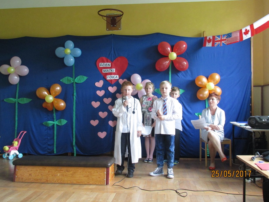 W dniu 25 maja 2017 w naszej szkole wszystkie Mamusie i Tatusiowie z dumą patrzyły na występy swoich pociech z okazji Dnia Matki i Ojca.