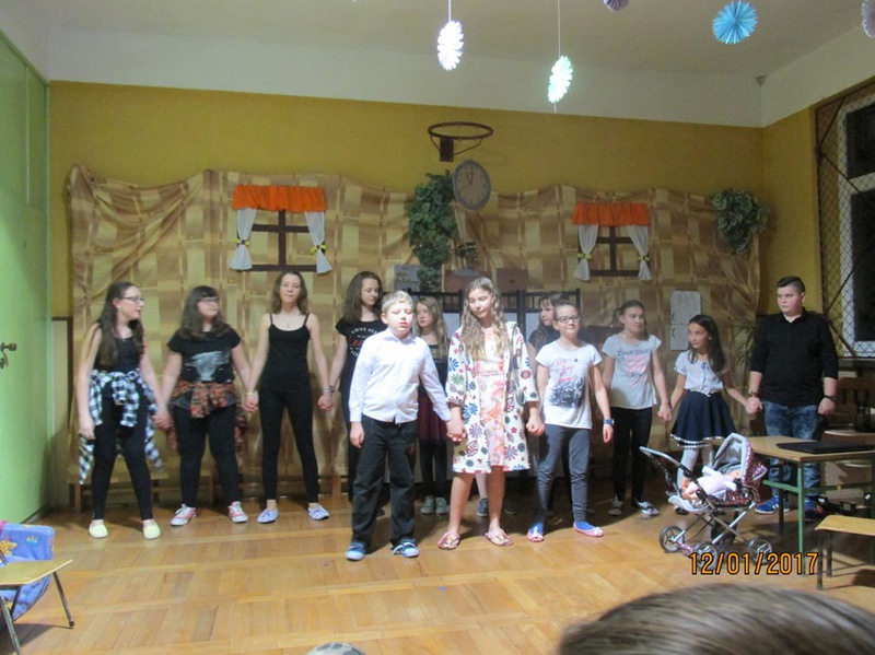 Ciekawym wydarzeniem było również zaprezentowanie się starszych uczniów, biorących udział w projekcie z języka angielskiego pod opieką pana Bogdana Chomiszczaka. Równie wspaniała scenografia, dekoracje i role całkowicie w języku angielskim wzbudziły podziw wśród rodziców.