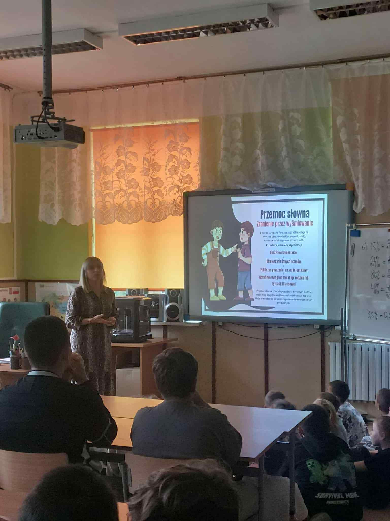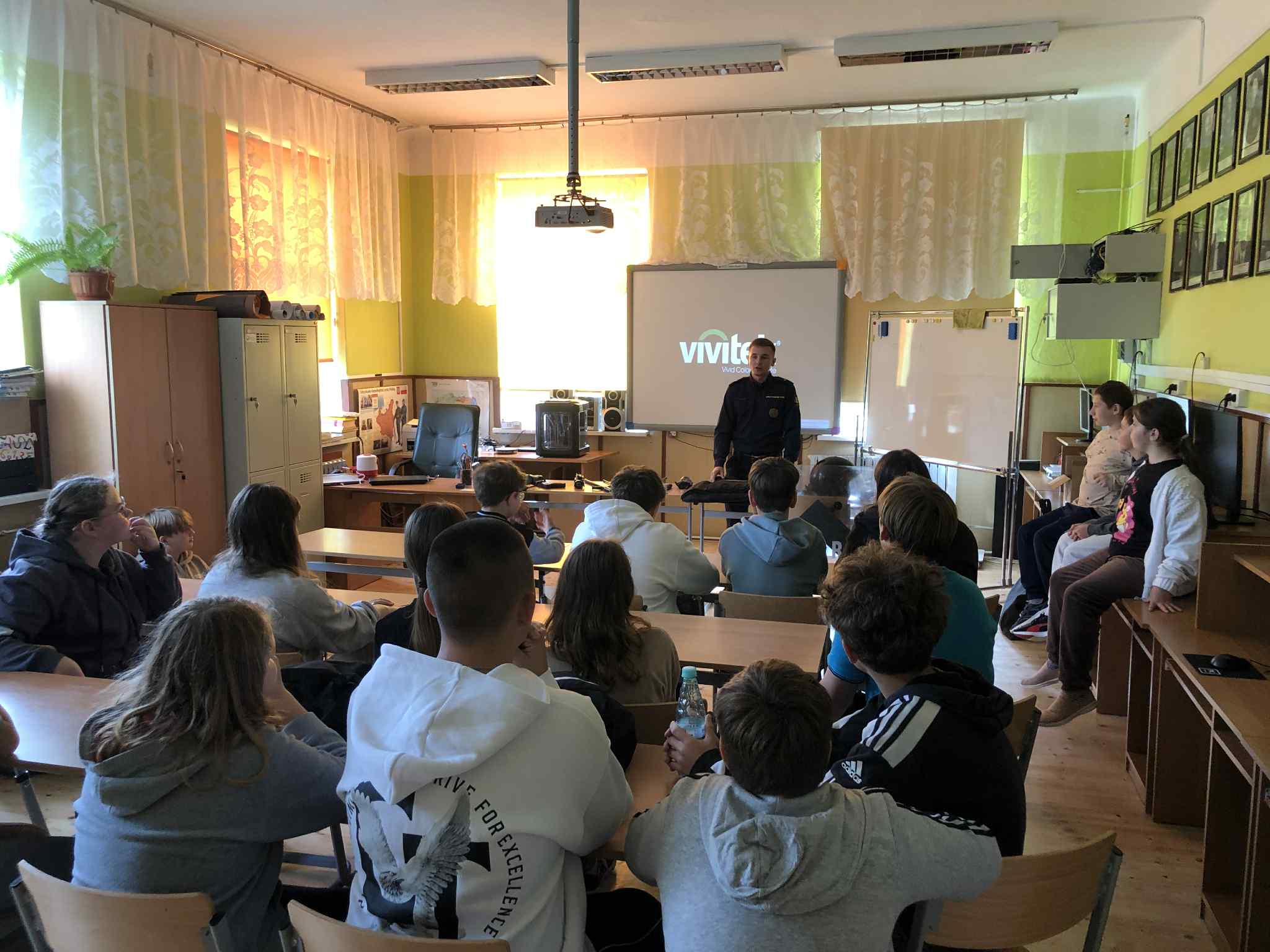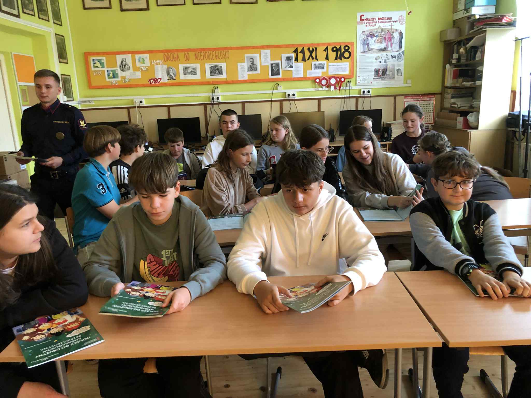 Następnie uczniowie udali się na wykład, na którym posłuchali o pracy i obowiązkach pracownika SOK. Na koniec funkcjonariusz rozdał dzieciom materiały edukacyjne dotyczące bezpieczeństwa w transporcie kolejowym.